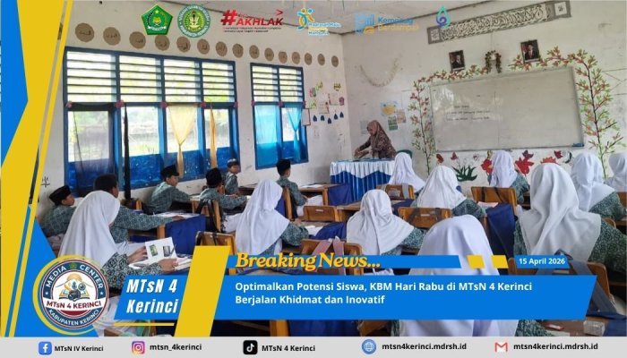KERINCI � Suasana kegiatan Belajar Mengajar (KBM) di MTsN 4 Kerinci pada hari Rabu ([Masukkan Tanggal]) terpantau berjalan dengan lancar dan penuh semangat. Sejak bel masuk berbunyi, seluruh siswa dan...