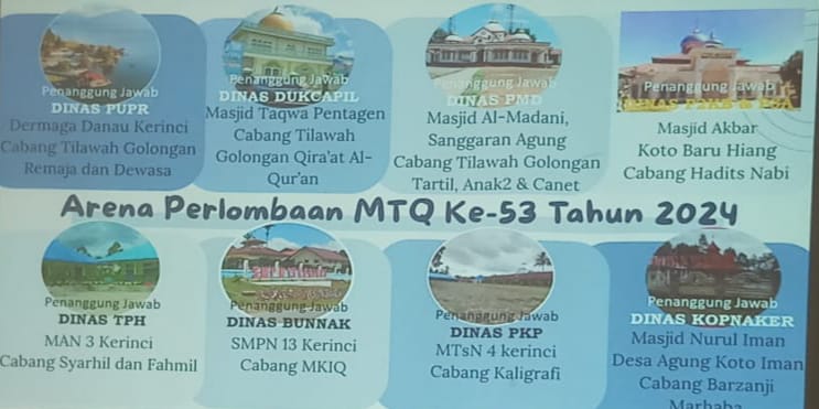 Dalam agenda rapat tersebut membahas tetang persiapan MTQ Ke-53 tingkat provinsi jambi di kabupaten Kerinci yang meliputi tempat kegiatan perlombaan dan tempat pemondokan kafilah peserta kabupaten/Kota dalam provinsi Jambi. Dari Rapat Tersebut, ditentukan beberapa titik lokasi pelaksanaan lomba yaitu salah satunya MTs Negeri 4 Kerinci ditinjuk menjadi titik lokasi atau tuan rumah dalam MTQ Tingkat provinsi jambi Ke-53 Tahun 2024 di Kabupaten Kerinci Cabang Kaligrafi.