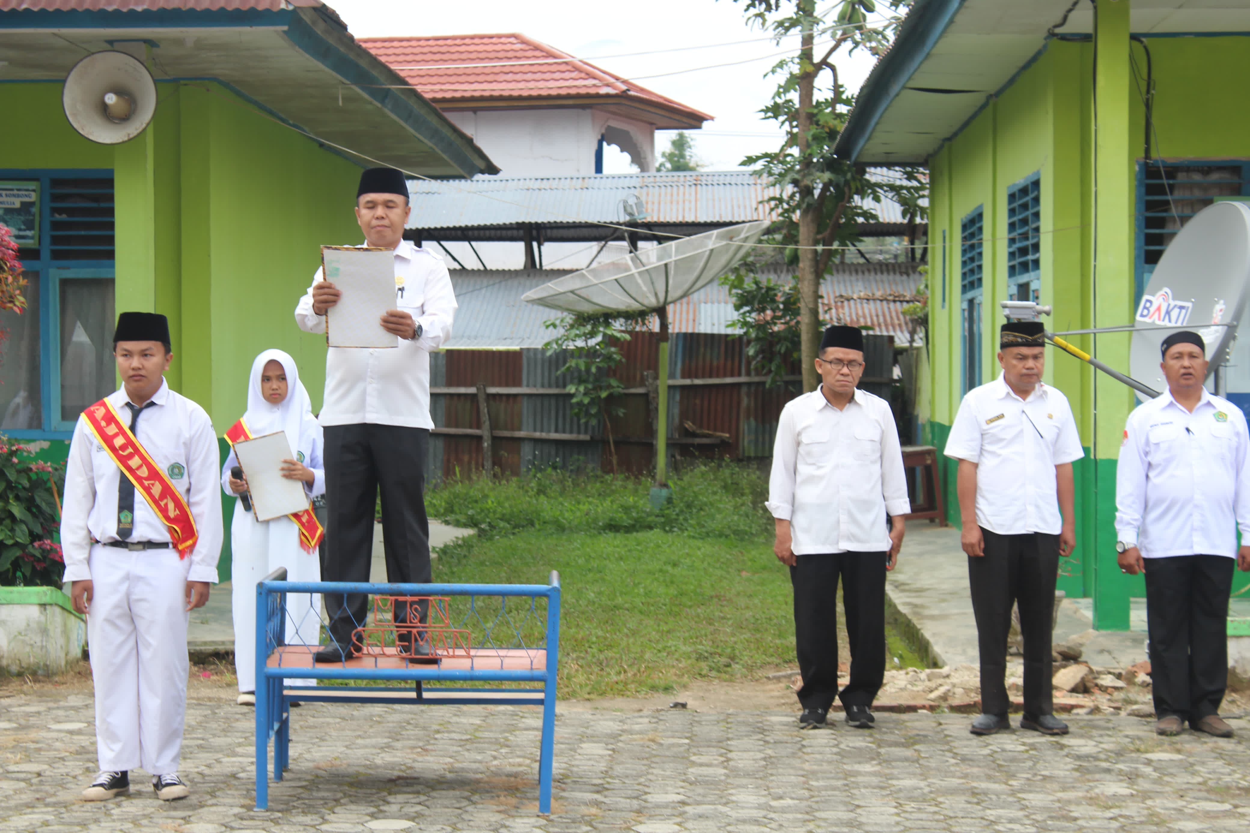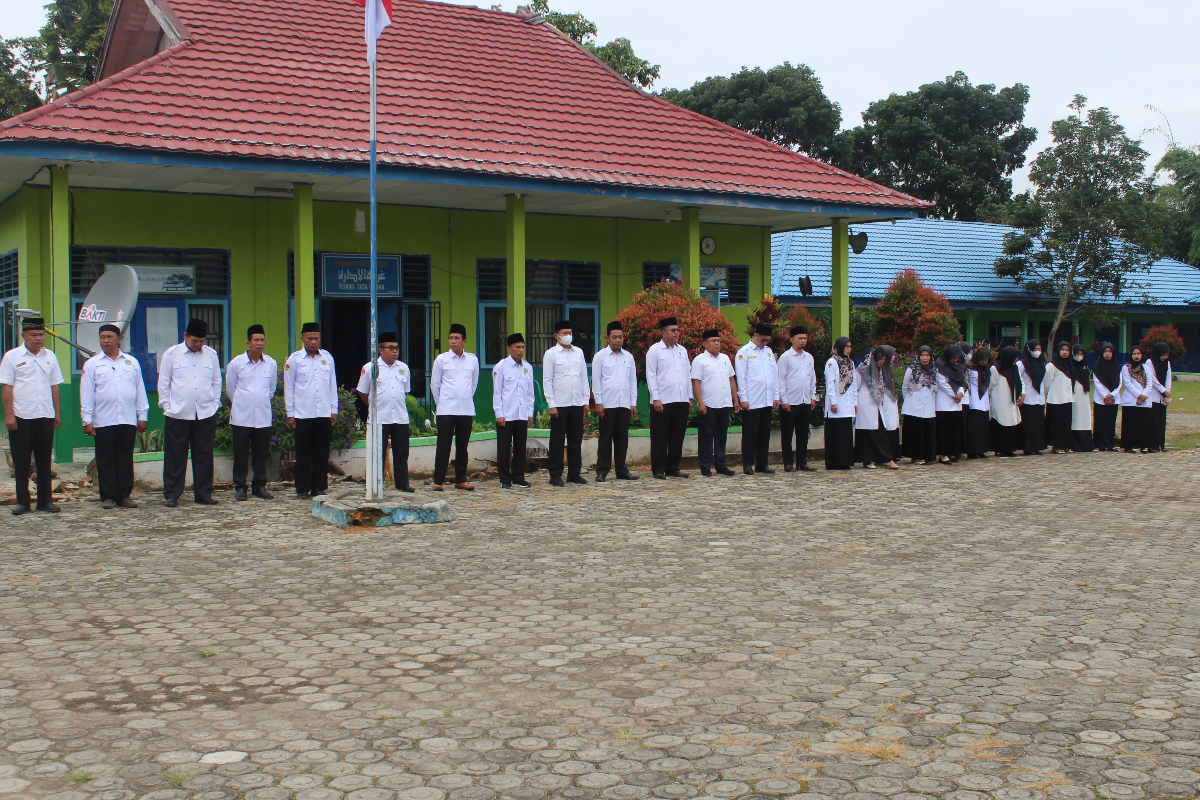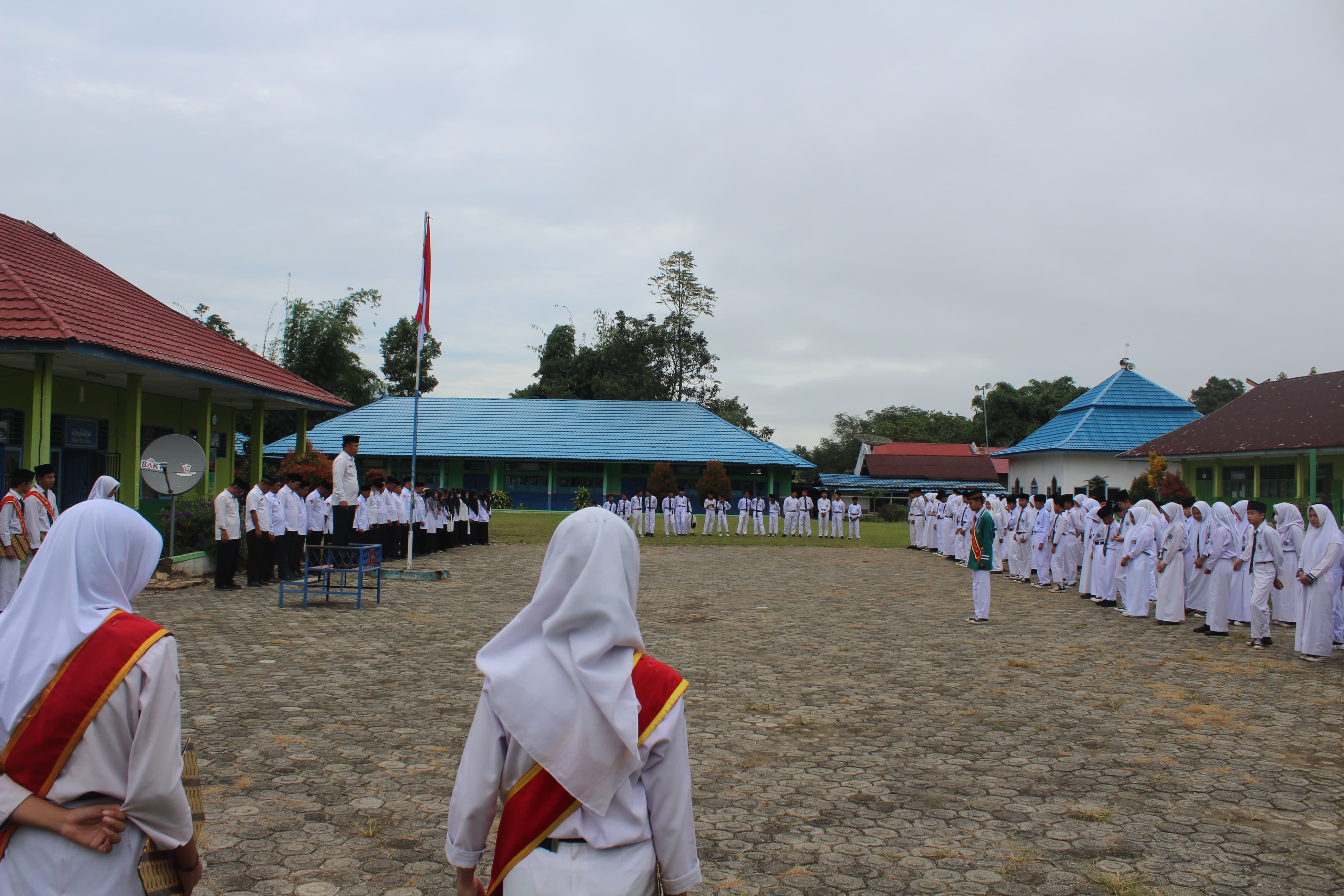 Pada kesempatan kali ini, Upacara Bendera dilaksanakan dengan petugas dari kelas IX A dan sebagai Pembina Upacara adalah bapak Sarul Alim, S.Ag. Dalam arahannya beliau menghimbau siswa-siswi untuk menjaga kedisiplinan serta mematuhi tata tertib dimadrasah. "Untuk seluruh siswa/i dari kelas VII sampai Kelas IX agar dapat mematuhi tata tertib dan peraturan di madrasah, jangan ada lagi yang melanggar. Madrasah akan baik dimulai dari diri kita sebagai warga madrasah. Disiplin bangun pagi, datang tepat waktu tidak ada lagi yang terlambat, mengikuti pelajaran dengan baik di kelas, dan patuh serta hormat kepada guru. Kalau kita menerapkan hal tersebut kita akan mudah dalam menyerap pelajaran yang disampaikan oleh bapak/ibu guru dikelas," Jelasnya.