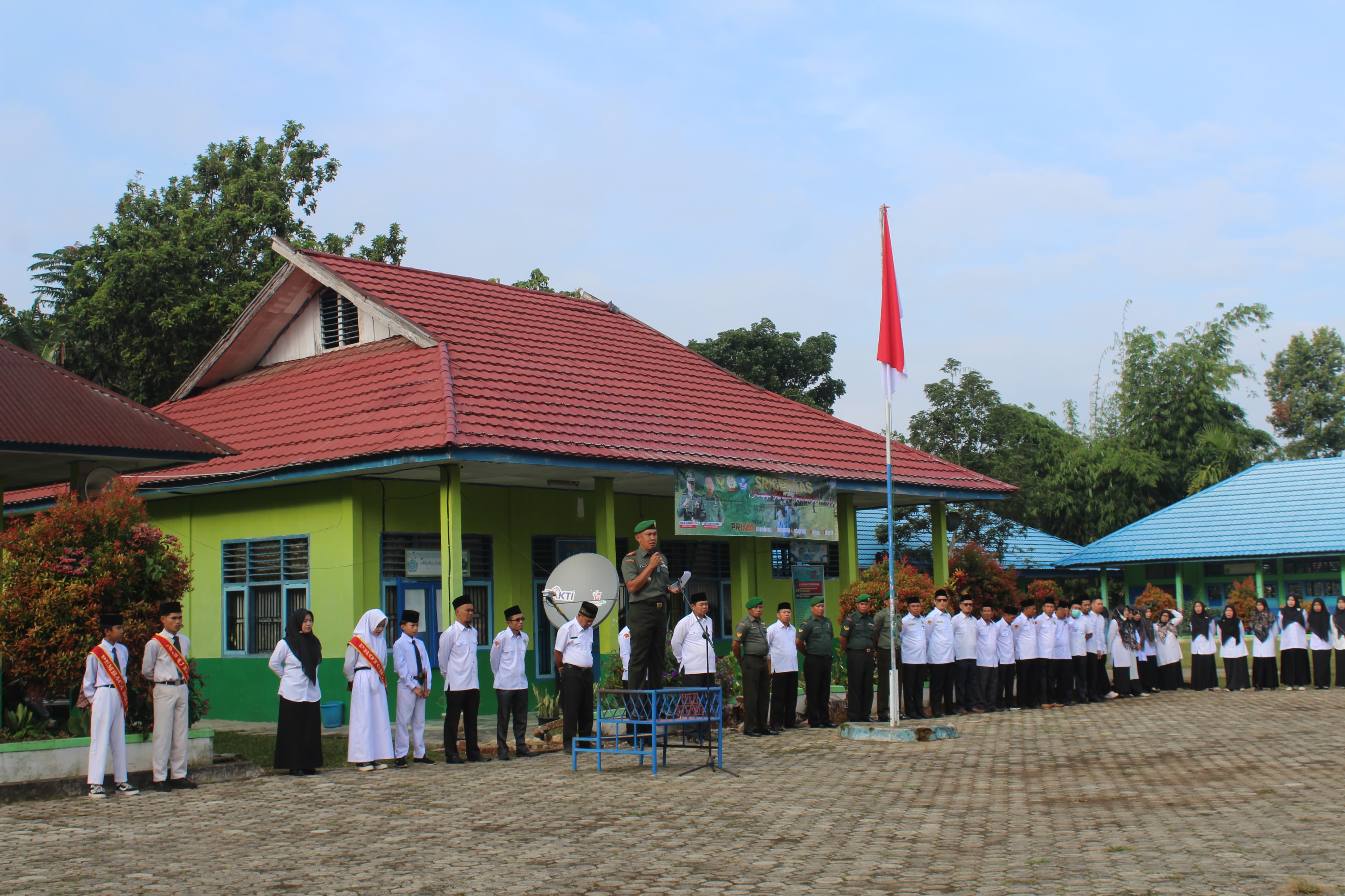 Kerinci (MTsN 4 Kerinci) - Upacara bendera yang rutin dilaksanakan di MTsN 4 Kerinci kali ini terasa berbeda karena yang bertindak sebagai Pembina Upacara adalah Komandan Koramil 417-05/Danau Kerinci Lettu Inf. Yelpanidi. Upacara bendera yang dilaksanakan di lapangan madrasah secara khitmad ini diikuti oleh seluruh Guru, staff tata usaha dan siswa/i MTsN 4 Kerinci, Senin (10/02).