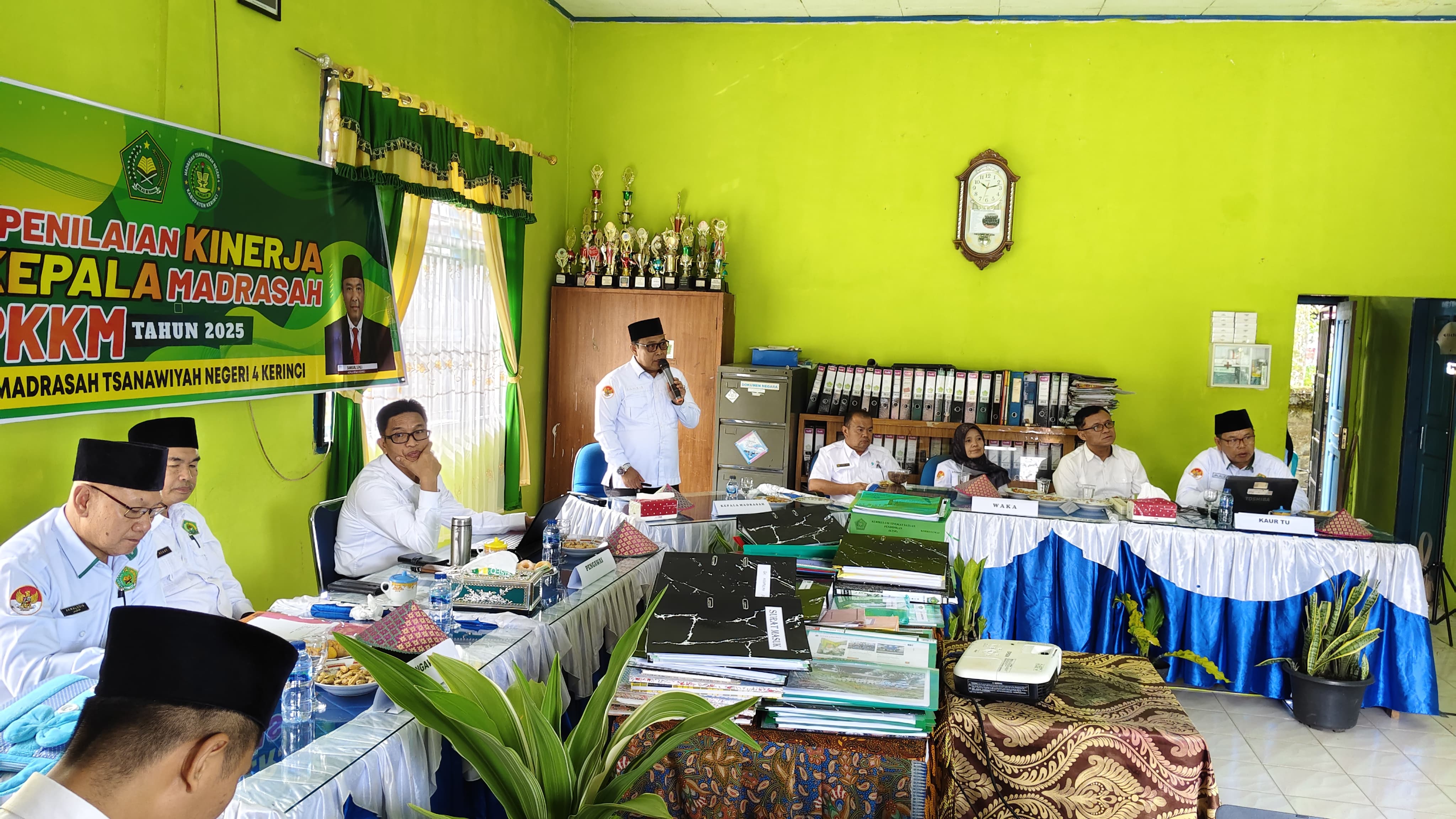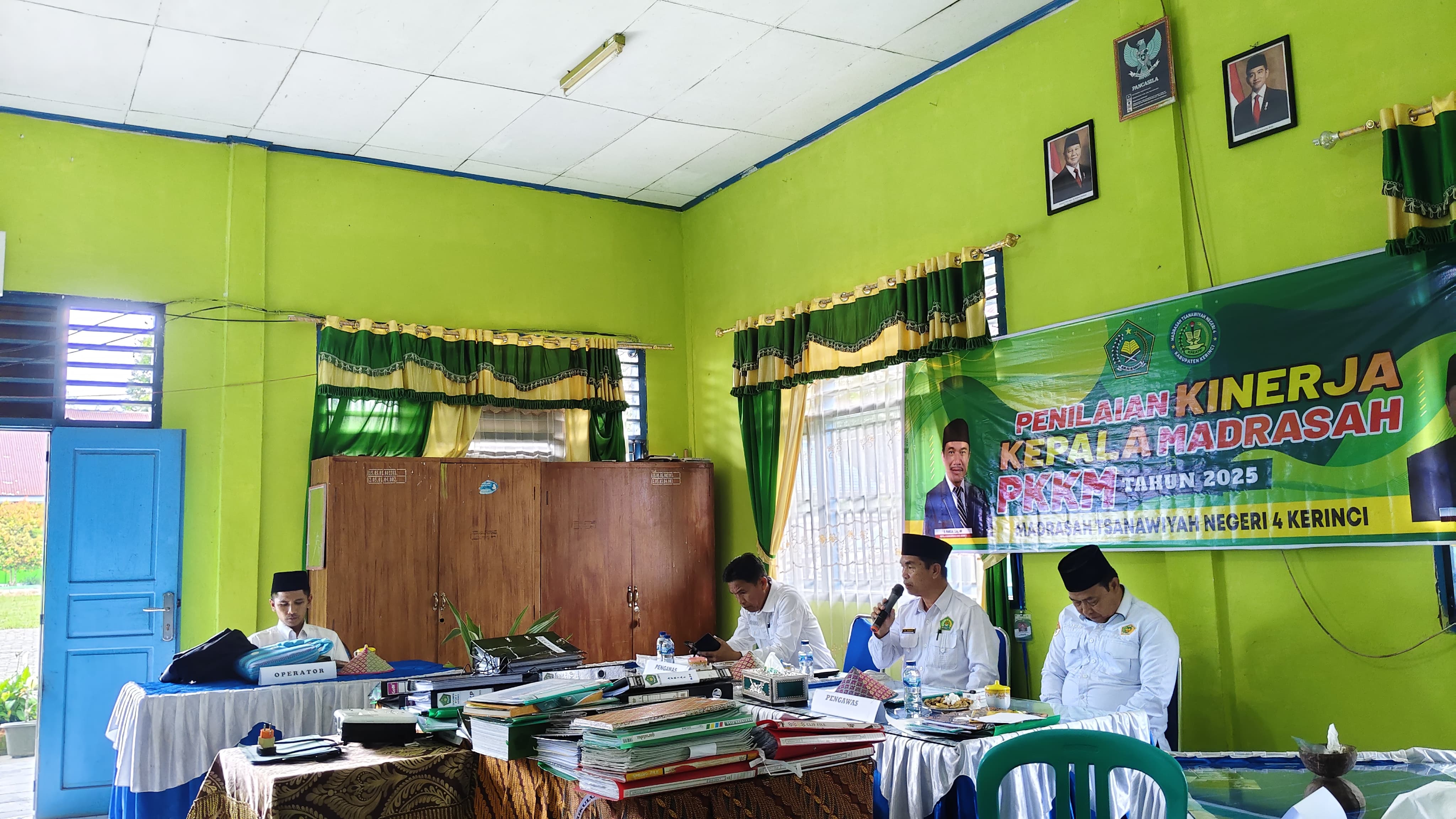 Penilaian kinerja kepala madrasah (PKKM) empat tahunan tahun 2025 di MTsN 4 Kerinci dilaksanakan pada hari Selasa (18/02), bertempat di ruang Tata Usaha MTsN 4 Kerinci, adapun sebagai Tim Penilai dari pengawas madrasah yakni Bapak H. Asaat, S. Ag, M.PdI dan Bapak Syahrudin, S.Ag, M.PdI.