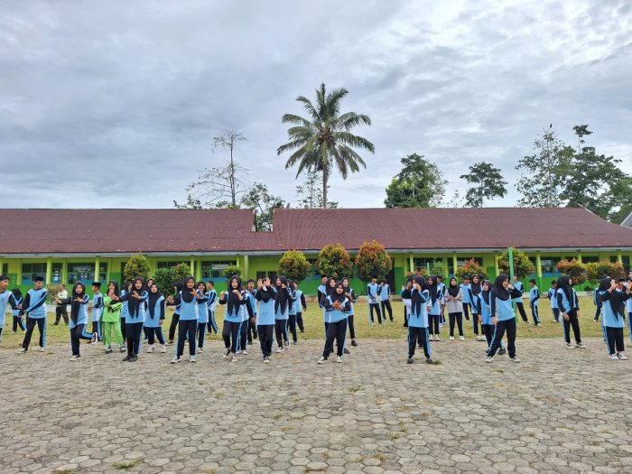 Kerinci (MTsN 4 Kerinci) - MTsN 4 Kerinci mengadakan kegiatan senam sehat pada Sabtu (30/08) pagi sebagai upaya meningkatkan kebugaran siswa dan tenaga pendidik. Kegiatan ini dilaksanakan secara rutin setiap pagi sabtu di lingkungan madrasah dan diikuti oleh seluruh siswa, guru, serta staf TU.