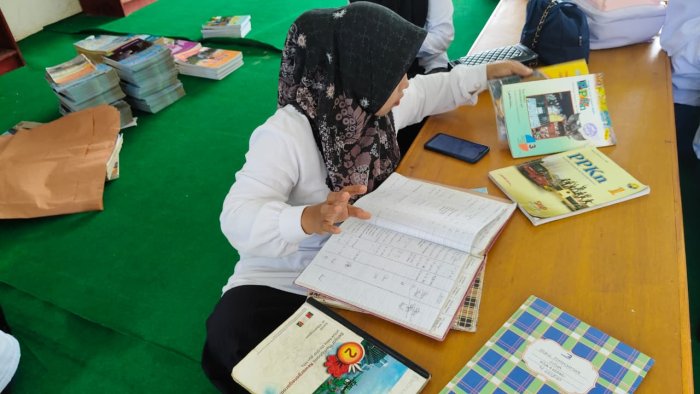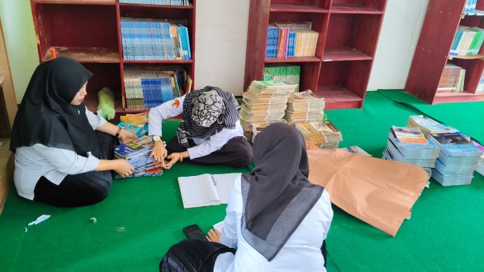 Keinci (MTsN 4 Kerinci) - Setelah dilakukan monitoring oleh tim pustakawan Kementerian Agama Kabupaten Kerinci pada senin kemarin (08/09), pagi ini selasa (09/09) pegawai perpustakaan MTsN 4 Kerinci melaksanakan kegiatan klasifikasi buku di perpustakaan madrasah. Kegiatan ini bertujuan untuk mengelompokkan dan menyusun buku-buku serta bahan pustaka lainnya secara sistematis berdasarkan ciri-ciri tertentu, seperti subjek, tema, atau isi buku.