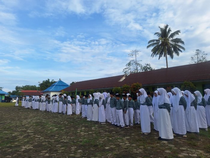 Kerinci (MTsN 4 Kerinci) - Apel disiplin siswa adalah kegiatan rutin di madrasah setiap pagi sebelum proses KBM dimulai. Apel disiplin dilaksanakan sebagai tempat siswa berkumpul untuk pembentukan karakter, penanaman disiplin, dan penyampaian informasi penting, yang bertujuan menciptakan lingkungan madrasah yang tertib dan kondusif untuk belajar serta memberi motivasi dan membangun tanggung jawab peserta didik.