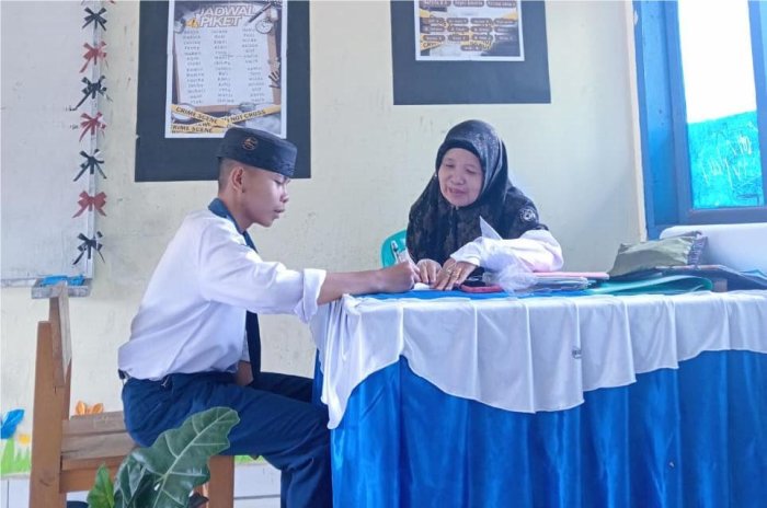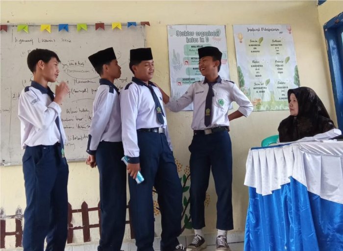 Pada Selasa (09/09), salah satu wali kelas, Asrianti, S.Pd selaku wali kelas IX C, terlihat melaksanakan pembinaan karakter di kelas IX C. Kehadiran wali kelas di tengah siswa menjadi upaya konkret dalam menanamkan nilai-nilai positif, seperti kedisiplinan, tanggung jawab, dan sikap saling menghargai. "Pembinaan dan bimbingan ini dilaksanakan sebagai upaya optimalisasi peran wali kelas disamping melaksanakan kegiatan pembelajaran. Pengontrolan dilaksanakan dengan mengecek kehadiran siswa setiap harinya, mana siswa yang bersalah atau lainnya, itu diberi pembinaan dan bimbingan. Misalnya ada siswa yang terlambat masuk kelas dibina dan diberi sanksi membaca perkalian dan hapalan surat pendek serta bacaan shalat fardu," Ujarnya.