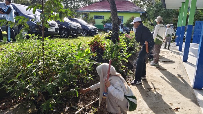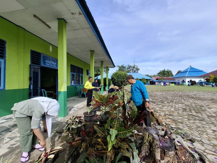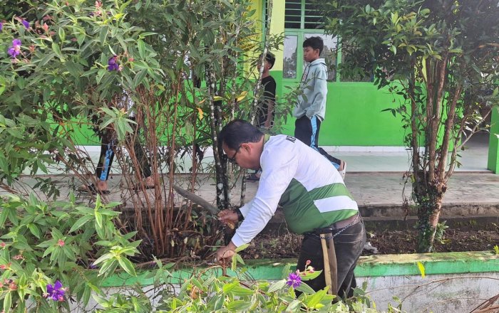 Kerinci (MTsN 4 Kerinci) - Madrasah Tsanawiyah Negeri (MTsN) 4 Kerinci menggelar kegiatan gotong royong bersama pada Jumat (19/09) sebagai bentuk dukungan terhadap program Kementerian Agama Aman, Rindang, Sejuk, dan Indah (ASRI). Kegiatan ini dilaksanakan sesuai dengan surat edaran Kementerian Agama Kabupaten Kerinci Nomor: B-1454/Kk.05.01/1.3/HM.00/09/2025 tentang pemberitahuan gotong royong serentak Kemenag ASRI yang melibatkan seluruh madrasah di Kabupaten Kerinci, termasuk MTsN 4 Kerinci, turut berpartisipasi dalam kegiatan ini.