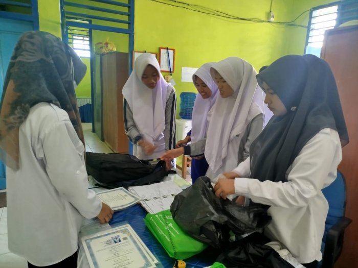 Kerinci (MTsN 4 Kerinci) - Madrasah Tsanawiyah Negeri (MTsN) 4 Kerinci mulai membagikan ijazah kepada para alumni tahun ajaran 2024-2025. Penyerahan ijazah ini dilakukan secara langsung di lingkungan madrasah, dengan tetap memperhatikan ketentuan yang berlaku. Petugas yang ditunjuk oleh madrasah yakni Ibuk Munawaroh, S.Pd dan Ibuk Nur Fazela, SE tampak melayani para alumni madrasah yang mengambil ijazah.