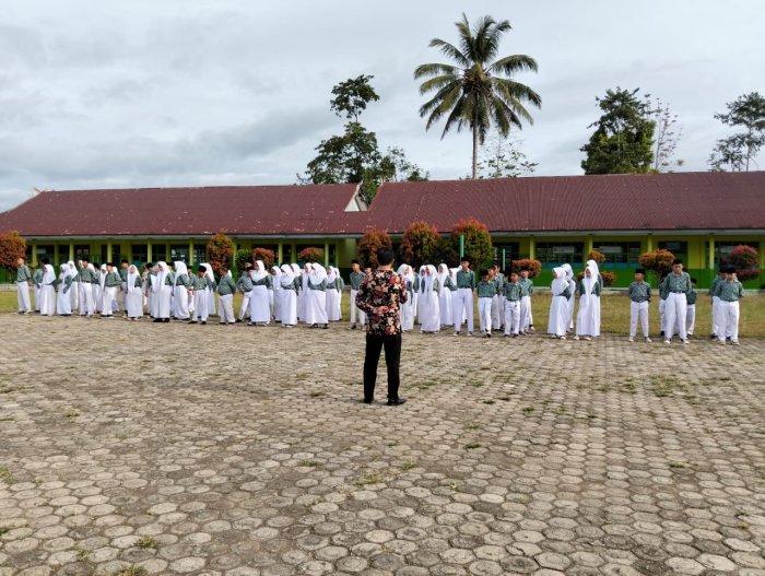 Kerinci (MTsN 4 Kerinci) - Rabu (05/11) para siswa mengikuti apel disiplin yang dipimpin oleh guru piket Bapak M. Akhyar, S.PdI di madrasah. Kegiatan ini bertujuan untuk menanamkan kedisiplinan dan tanggung jawab kepada seluruh siswa.