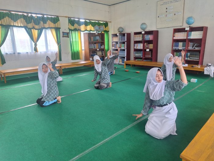 Kerinci (MTsN 4 Kerinci) - Tim seni Madrasah Tsanawiyah Negeri (MTsN) 4 Kerinci mengadakan latihan intensif sebagai persiapan menghadapi Hari Guru Nasional (HGN) di MTsN 4 Kerinci dan Expo di MAN 3 Kerinci yang akan datang. Kegiatan latihan ini berlangsung di ruang perpustakaan dan diikuti oleh para siswa yang tergabung dalam tim seni.