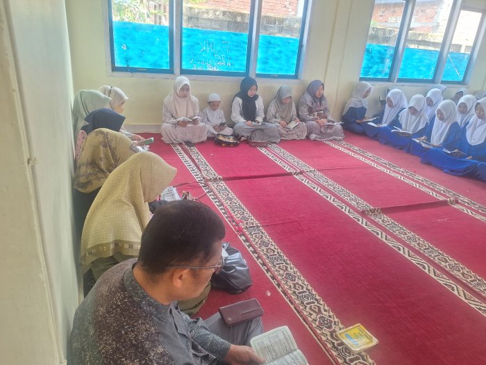 Kerinci (MTsN 4 Kerinci) - Madrasah Tsanawiyah Negeri (MTsN) 4 Kerinci kembali melaksanakan kegiatan rutin yasinan bersama pada pagi Jumat (14/11) di mushala madrasah. Kegiatan ini diikuti oleh seluruh siswa, guru, dan staf madrasah sebagai bagian dari upaya meningkatkan keimanan dan ketakwaan.