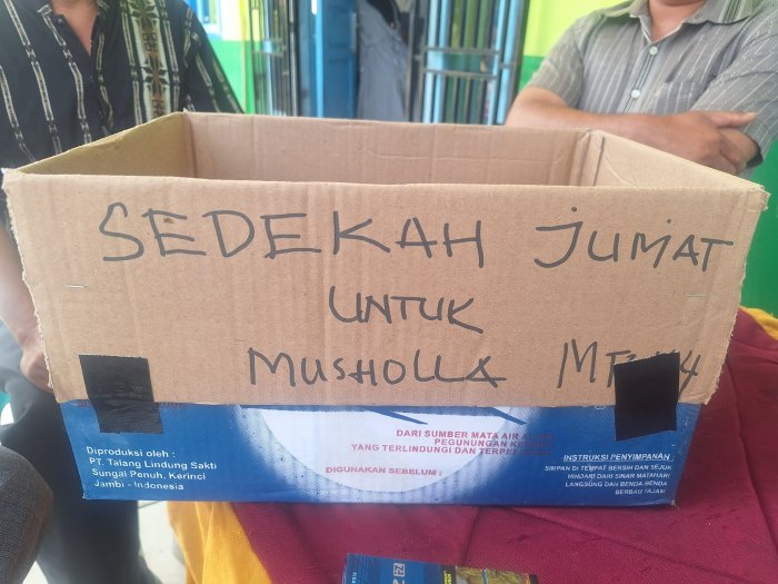 Kerinci (MTsN 4 Kerinci) - Organisasi Siswa Intra Madrasah (OSIM) MTsN 4 Kerinci bekerjasama dengan pengurus mushalla MTsN 4 Kerinci melaksanakan program Infaq Jumat sebagai upaya menanamkan jiwa sosial di kalangan siswa, guru dan staf madrasah. Kegiatan ini rutin digelar setiap hari Jumat di lingkungan madrasah.