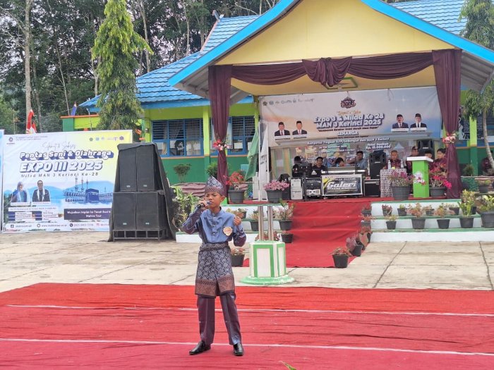 Kerinci (MTsN 4 Kerinci) - M. Khairil yang merupakan salah satu siswa MTsN 4 Kerinci menjadi salah satu peserta yang tampil membawakan lagu solo dalam acara Expo MAN 3 Kerinci pada Rabu (26/11). Acara ini digelar di lingkungan MAN 3 Kerinci dengan tujuan untuk menampilkan bakat dan kreativitas para siswa.