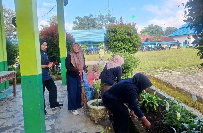 Kerinci (MTsN 4 Kerinci) - MTsN 4 Kerinci mengadakan kegiatan gotong royong membersihkan pekarangan madrasah setelah libur semester ganjil berakhir. Kegiatan ini dilaksanakan pada hari Sabtu (10/1), sebagai bentuk kepedulian terhadap kebersihan dan kenyamanan lingkungan belajar.