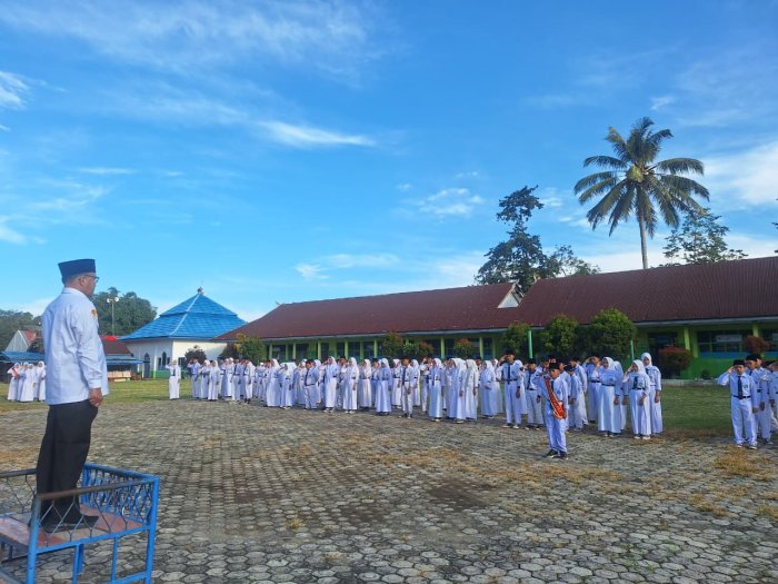 Kerinci (MTsN 4 Kerinci) - MTsN 4 Kerinci melaksanakan upacara bendera pada Senin pagi (12/01), di halaman madrasah. Seluruh siswa, guru, dan staf madrasah turut berpartisipasi dalam kegiatan rutin mingguan ini dengan petugas upacara dari pengurus OSIM serta pembina Bapak Sarul Alim, S.Ag. Upacara bendera menjadi salah satu sarana untuk menanamkan nilai-nilai kedisiplinan dan nasionalisme di lingkungan pendidikan.