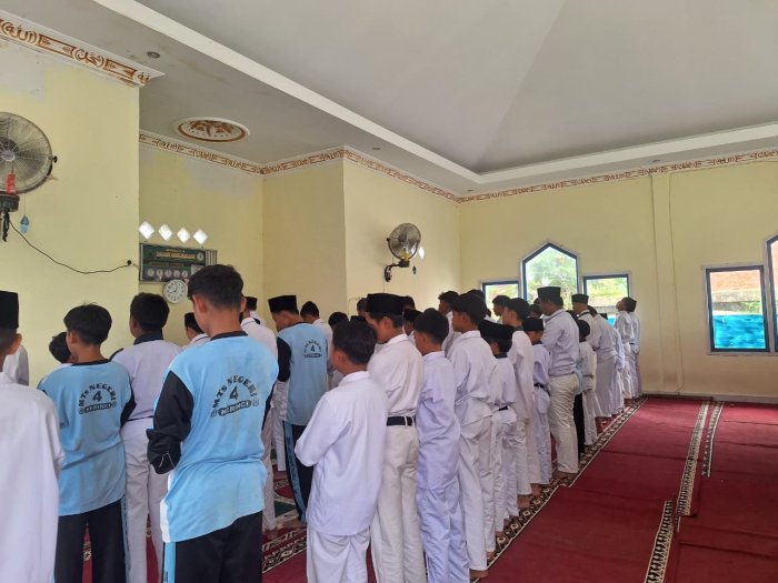 Kerinci (MTsN 4 Kerinci) - Di tengah padatnya aktivitas belajar mengajar, MTsN 4 Kerinci terus konsisten menanamkan nilai-nilai spiritual kepada para siswanya. Hal ini terlihat dari rutinitas pelaksanaan salat zuhur berjamaah yang digelar setiap hari di Mushalla madrasah. Kegiatan ini bukan sekadar pemenuhan kewajiban ibadah, melainkan telah menjadi bagian dari kurikulum pembentukan karakter (character building) bagi seluruh siswa.