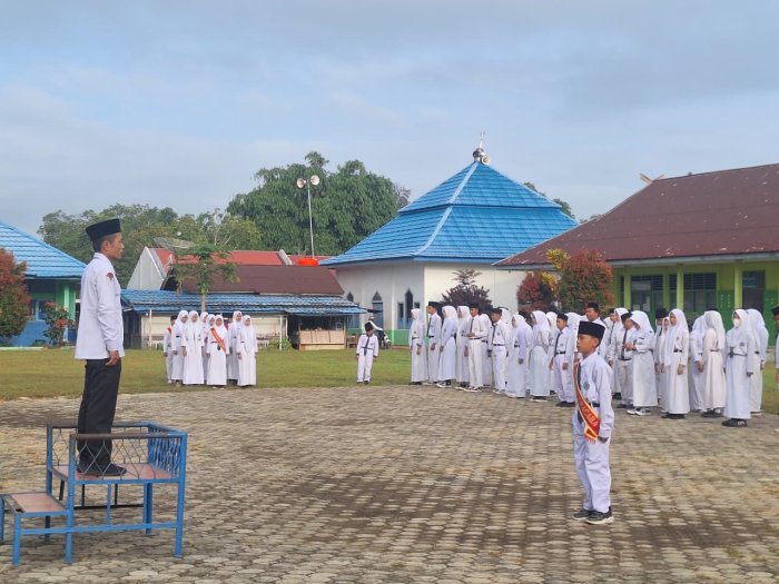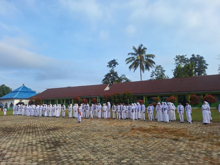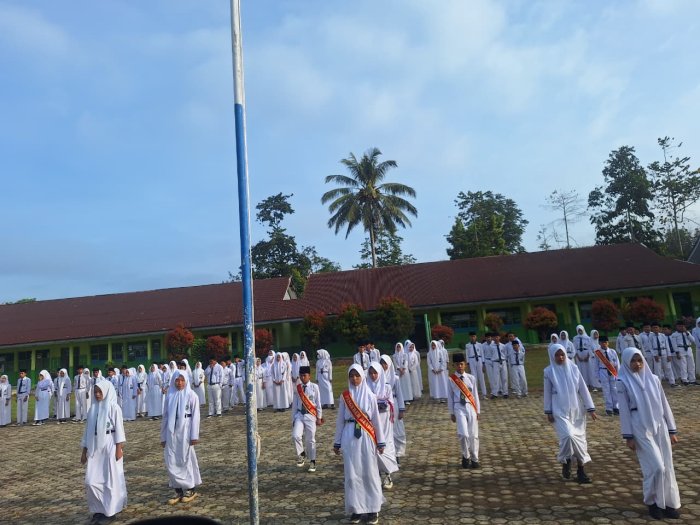 Kerinci (MTsN 4 Kerinci) - Madrasah Tsanawiyah Negeri (MTsN) 4 Kerinci kembali melaksanakan rutinitas upacara bendera hari Senin pagi dengan khidmat (26/01). Kegiatan yang berlangsung di lapangan utama madrasah ini diikuti oleh seluruh siswa, guru, serta staf tata usaha. Bertindak sebagai Pembina Upacara adalah Wakil Kepala Madrasah (Waka) Bidang Kurikulum, Bapak Edi Aprijono, S.Pd. Sementara itu, bertugas sebagai pelaksana upacara adalah siswa-siswi anggota Pramuka MTsN 4 Kerinci.