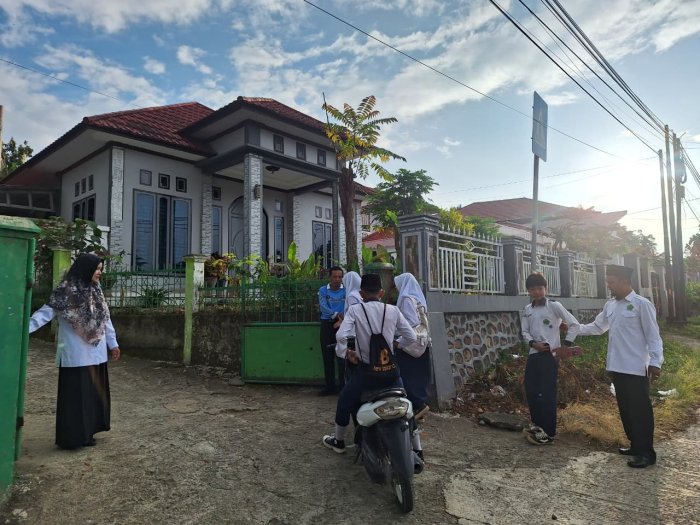 Kerinci (MTsN 4 Kerinci) - Selasa (27/01), suasana hangat menyelimuti gerbang utama MTsN 4 Kerinci. Sejak pukul 06. 45 WIB, jajaran guru telah berdiri rapi untuk melaksanakan tradisi rutin menyambut kehadiran para siswa dengan senyuman dan sapaan ramah. Kegiatan yang dikenal sebagai "Sapa Pagi" ini bukan sekadar rutinitas formalitas. Bagi para tenaga pendidik di madrasah ini, berdiri di gerbang adalah cara terbaik untuk membangun ikatan emosional dengan siswa sebelum aktivitas belajar mengajar di kelas dimulai.