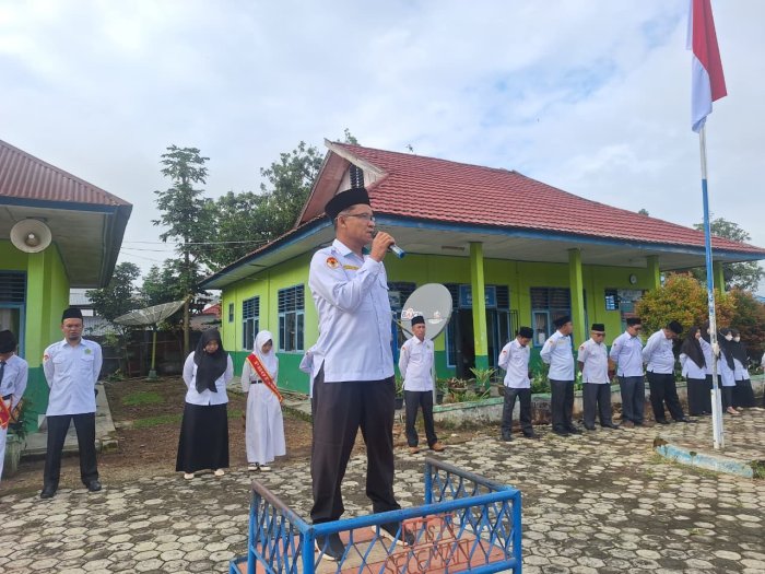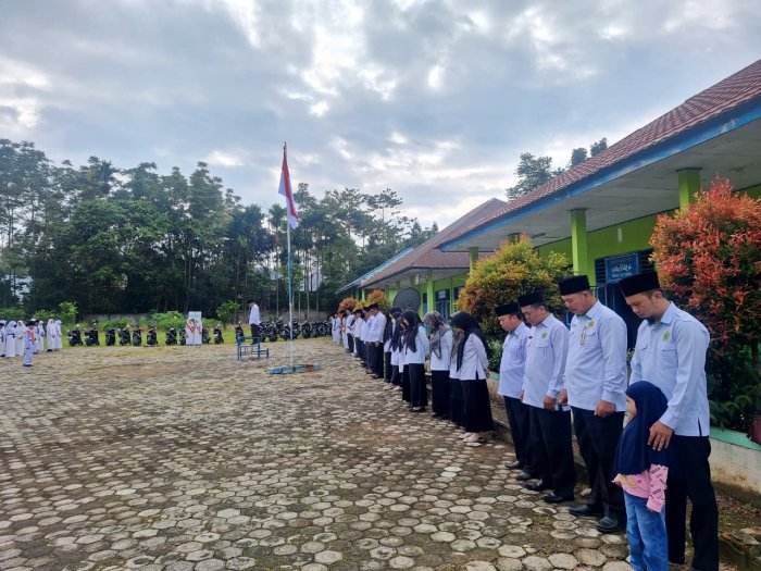 Kerinci (MTsN 4 Kerinci) - Suasana khidmat menyelimuti lapangan utama Madrasah Tsanawiyah Negeri (MTsN) 4 Kerinci pada Senin pagi ini (02/02). Seluruh siswa, guru, dan staf mengikuti upacara bendera rutin yang dilaksanakan dengan penuh dedikasi dengan petugas upacara adalah kelas IX D dan dibantu oleh anggota pramuka.