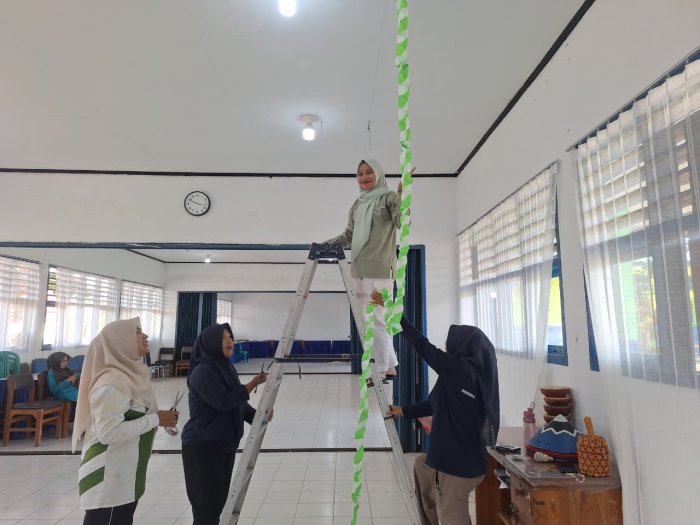 Begitu juga sentuhan kreatif ibu-ibu yang tampak sibuk di area utama dalam mendekorasi arena panggung agar tampil estetik dan representatif bagi para penampil nantinya.