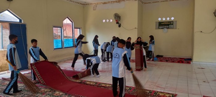 Sedangkan siswa tak mau ketinggalan, para siswa dengan penuh semangat membersihkan ruang mushalla. Area ini disiapkan secara khusus untuk menjadi lokasi cabang lomba religi, yakni lomba adzan.