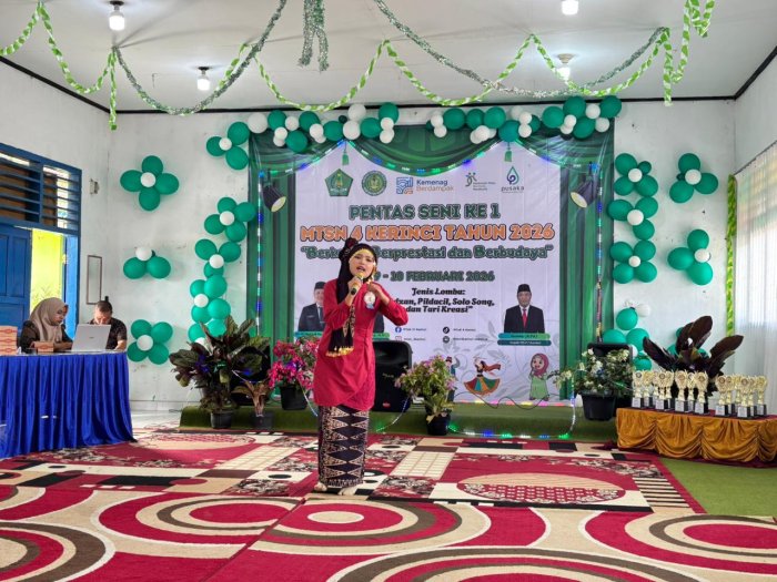 Kerinci (MTsN 4 Kerinci) - Kemeriahan Pentas Seni (Pensi) di MTsN 4 Kerinci terus berlanjut. Hari ini, Selasa (10/02), suasana madrasah tampak lebih hidup dengan digelarnya rangkaian lomba hari kedua yang berfokus pada pengembangan bakat seni suara dan kemampuan dakwah siswa. Adapun agenda utama pada hari kedua ini adalah Lomba Solo Song dan Lomba Kultum antar kelas.