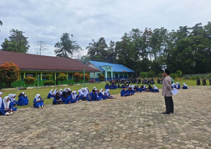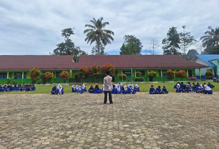 Kerinci (MTsN 4 Kerinci) - Setelah sukses memeriahkan jalanan menuju Desa Seleman dengan Pawai Ta'aruf dan dentuman drumband Gemuruh Energi, seluruh siswa MTsN 4 Kerinci kembali berkumpul di lapangan utama madrasah. Agenda dilanjutkan dengan penertiban dan pengarahan langsung dari Wakil Kepala Madrasah (Wakamad) Bidang Kesiswaan Bapak Jamaluddin, S.PdI.