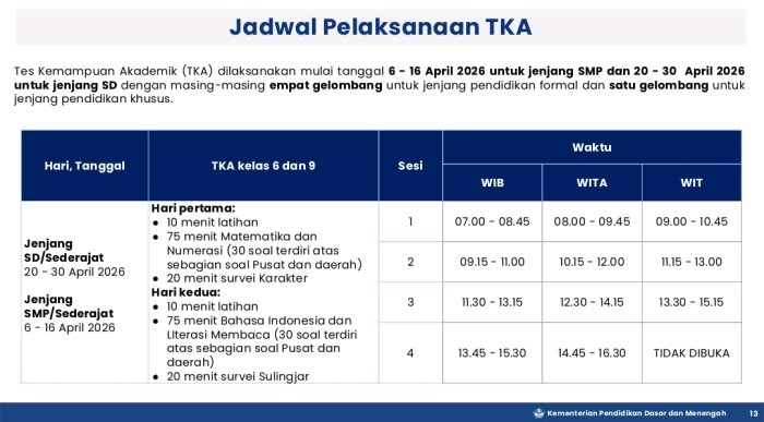Pertemuan tersebut fokus pada sosialisasi teknis pelaksanaan TKA yang bertujuan untuk memetakan capaian standar kompetensi lulusan secara nasional. Beberapa poin krusial yang dibahas meliputi sistem pelaksanaan yang mencangkup teknis ujian daring yang akan menggunakan platform resmi kementerian, Insfrastruktur digital yang merupakan kesiapan perangkat komputer dan stabilitas jaringan internet di masing-masing satuan pendidikan, serta jadwal simulasi atau rencana uji coba sistem sebelum hari pelaksanaan untuk meminimalisir kendala teknis.