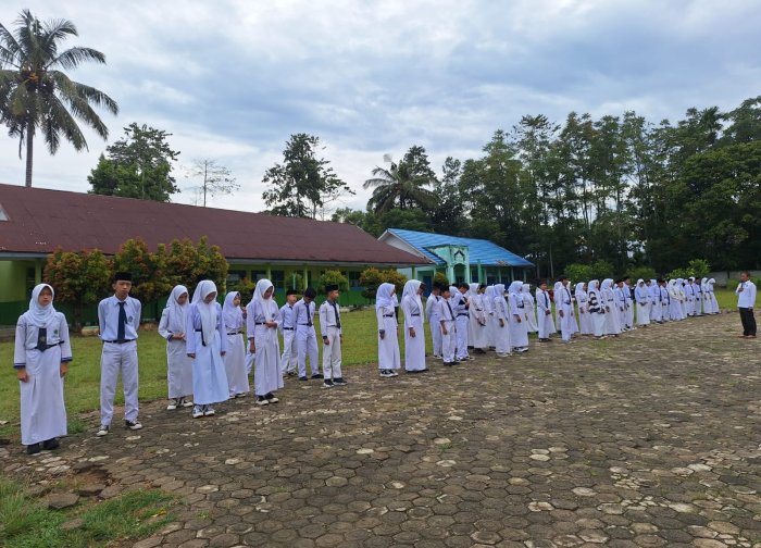 Kerinci (MTsN 4 Kerinci) - Suasana khidmat dan penuh kedisiplinan menyelimuti halaman madrasah pada pagi hari ini. Seluruh siswa, guru, dan staf berkumpul untuk melaksanakan apel pagi perdana di bulan suci Ramadan. Meski sedang menjalankan ibadah puasa, antusiasme peserta didik tetap terpancar kuat di bawah sinar matahari pagi.