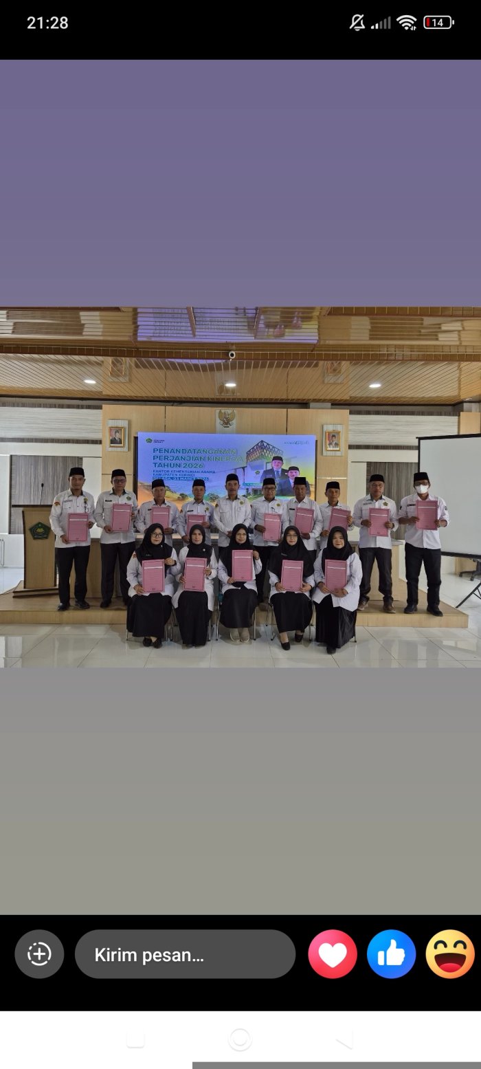Kerinci (MTsN 4 Kerinci) - Kepala Madrasah Tsanawiyah Negeri (MTsN) 4 Kerinci Bapak Samsir, S.PdI secara resmi mengikuti acara penandatanganan Perjanjian Kinerja (Perkin) Tahun 2026 di lingkungan Kantor Kementerian Agama Kabupaten Kerinci. Kegiatan yang berlangsung pada Selasa (03/03), bertempat di Aula PLHUT Kantor Kemenag Kerinci.