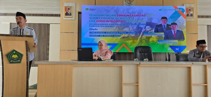 Kerinci (MTsN 4 Kerinci) - Upaya mewujudkan tata kelola pemerintahan yang bersih dan melayani terus diperkuat oleh jajaran madrasah di lingkungan Kantor Kementerian Agama Kabupaten Kerinci. Pada hari ini, Jumat (06/03), Tim Penilaian Mandiri Pembangunan Zona Integritas (PMPZI) MTsN 4 Kerinci mengikuti kegiatan pendampingan Short Course Pengisian Lembar Kerja Evaluasi (LKE) Zona Integritas (ZI) Tahun 2026.