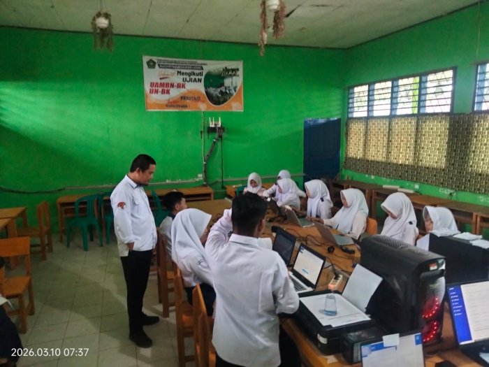 Kerinci (MTsN 4 Kerinci) - Pelaksanaan gladi bersih Tes Kemampuan Akademik (TKA) hari kedua Selasa (10/03), di Madrasah Tsanawiyah Negeri (MTsN) 4 Kerinci terpantau berjalan aman dan lancar tanpa kendala teknis yang berarti. Kegiatan ini merupakan bagian dari rangkaian persiapan menjelang pelaksanaan asesmen kompetensi siswa yang sesungguhnya.