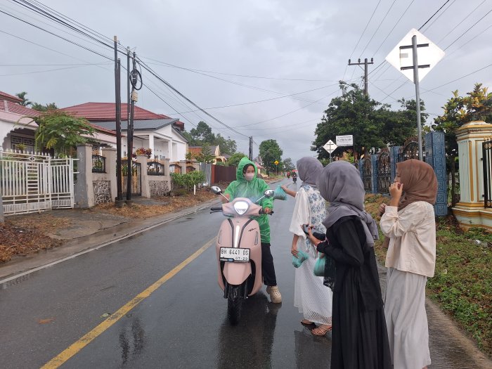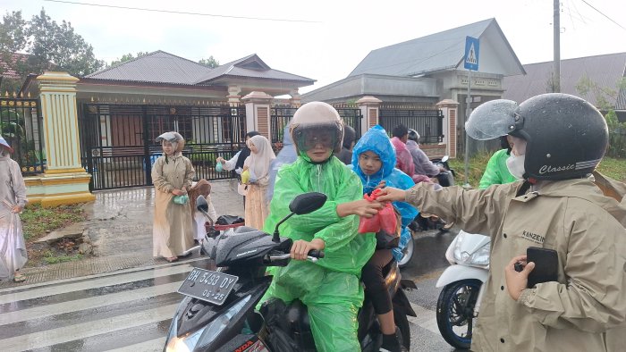 Meskipun sempat terkendala cuaca ekstrem berupa hujan deras yang mengguyur lokasi, hal tersebut tidak menyurutkan semangat panitia dan pengurus Organisasi Siswa Intra Madrasah (OSIM). Setelah hujan mulai mereda, para siswa dan guru pendamping segera bergerak menuju pinggir jalan untuk melanjutkan aksi mulia tersebut.