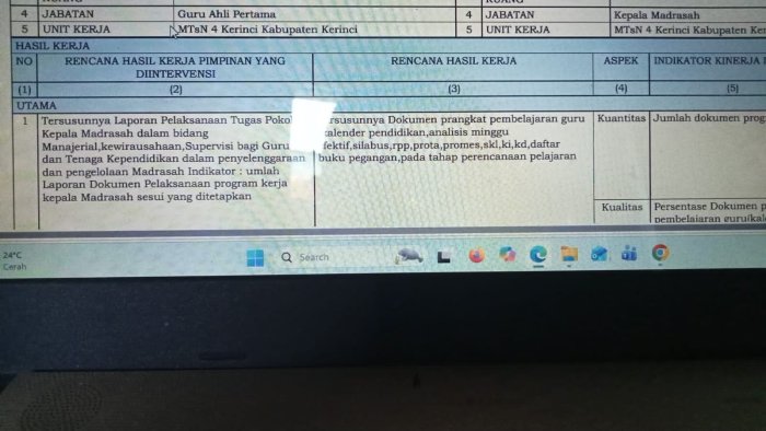 Kerinci (MTsN 4 Kerinci) - Memasuki penghujung bulan Maret, para Pendidik dan Tenaga Kependidikan (PTK) di Madrasah Tsanawiyah Negeri (MTsN) 4 Kerinci mulai disibukkan dengan penyusunan Sasaran Kinerja Pegawai (SKP) untuk Triwulan I tahun 2026. Langkah ini dilakukan guna memastikan seluruh target kinerja periode Januari hingga Maret terekam dengan baik dan akurat.