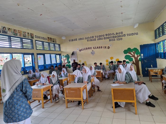 Dari ruang kepala madrasah dilanjutkan ke ruang kelas IX. Dihadapan para siswa Tim Sosialisasi MAN 1 Kerinci memberikan gambaran komprehensif mengenai profil sekolah, mulai dari fasilitas, ekstrakurikuler, hingga berbagai jalur prestasi yang tersedia untuk Tahun Pelajaran (Tapel) 2026/2027.
