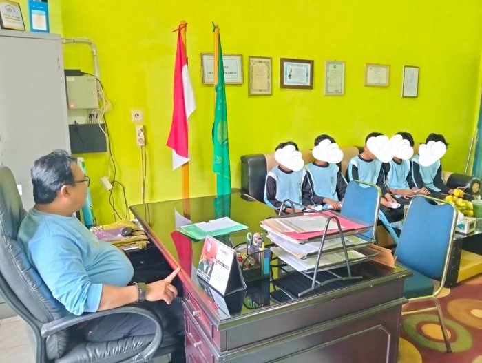 Siswa yang bersangkutan dipanggil langsung ke ruang Kepala Madrasah untuk memberikan klarifikasi atas pelanggaran yang dilakukan. Dalam suasana yang tertib namun tetap mengedepankan nilai bimbingan, Bapak Samsir, S.PdI memberikan arahan mengenai pentingnya disiplin sebagai kunci kesuksesan di masa depan. "Madrasah bukan hanya tempat mentransfer ilmu pengetahuan, tetapi juga tempat pembentukan akhlak. Setiap aturan dibuat untuk kebaikan siswa sendiri agar mereka terbiasa hidup teratur dan menghargai komitmen," ujar Kepala MTsN 4 Kerinci di sela-sela pembinaan.