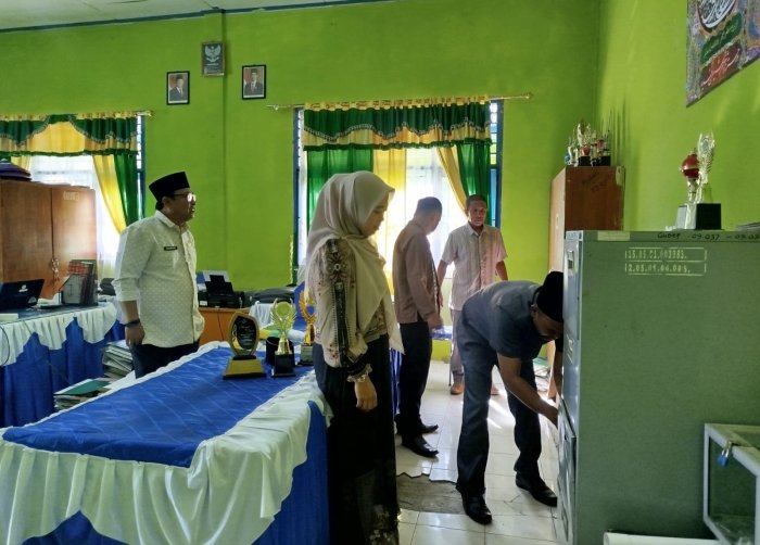 Kerinci (MTsN 4 Kerinci) - KERINCI – Sebagai langkah nyata dalam meningkatkan tata kelola administrasi yang lebih profesional dan sistematis, Madrasah Tsanawiyah Negeri (MTsN) 4 Kerinci melakukan peremajaan sarana prasarana kantor. Fokus utama dalam kegiatan kali ini adalah penggantian lemari berkas lama dengan unit lemari baru yang lebih modern di ruang Tata Usaha (TU), Jumat (10/04).